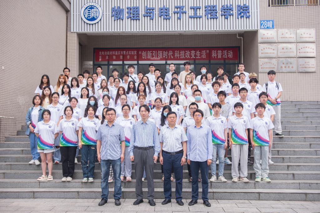 光电功能材料重庆市重点实验室和重庆物理学会以“创新引领时代 科技改变生活”为主题举办了一场精彩科普交流活动。物电学院党委书记杨云,副院长(主持工作)余鹏,光电功能材料重庆市重点实验室副主任曾召益,秘书姚立忠,部分实验室老师及广大青年学子参加了本次科普活动。