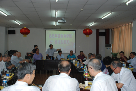党总支书记唐敏向校友们介绍了物电学院的现状,出席本次座谈会的还有院副院长曾毅和党总支副书记冉久飞。老师和校友们回忆起了学校时光,仿佛又回到了当年的青春岁月融洽的氛围、温馨的场面弥漫会场。接着校友合影留念。