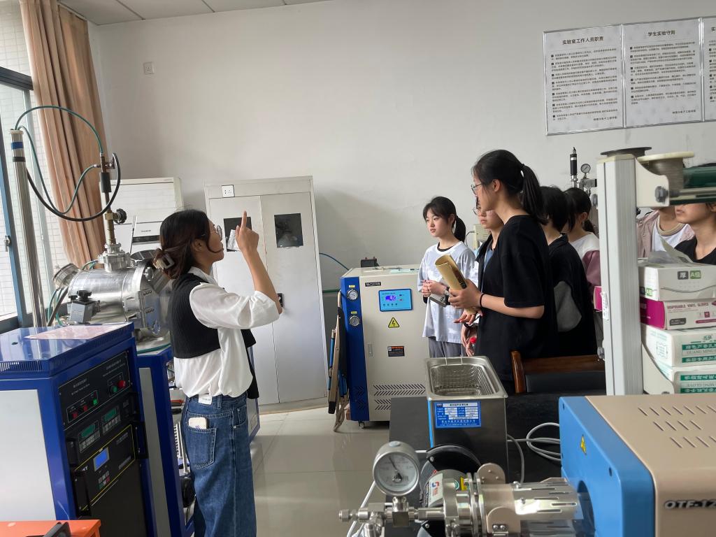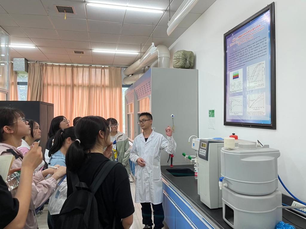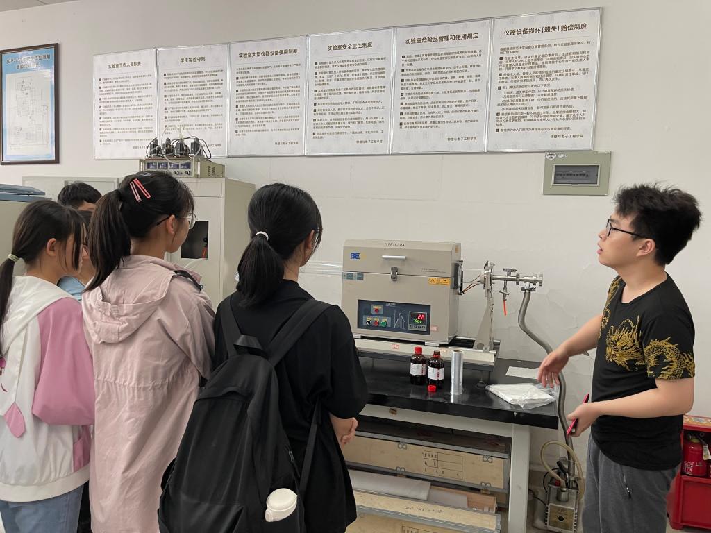 光电功能材料重庆市重点实验室主任余鹏教授对大一中师生一行的来访表示欢迎,随后向同学们介绍了实验室的科研方向和主要科研成果。接着同学们有序地对各个实验室进行了参观,并体验了部分实验过程。一踏进实验室的门,同学们立刻被各式各样的实验器材吸引,研究生讲解员耐心地为同学们介绍实验室的各项实验仪器与具体操作流程,期间同学们积极提问,现场氛围活跃。
