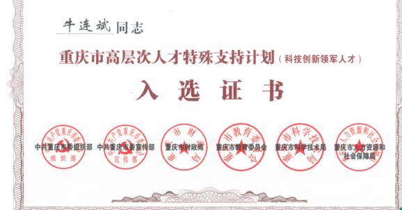韩国h漫 牛连斌老师当选为2018年重庆市科技创新领军人才;
