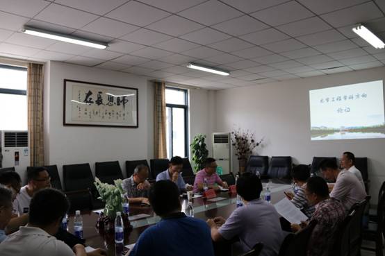 的院长崔玉亭教授介绍了在“光学工程”学科下设定的激光技术与工程、光电转换技术与系统、光电功能材料与器件、光化学技术与工程这4个研究方向的设置背景、主要研究领域、内容及今后的发展思路。之后,化学学院副院长刘玺教授对光化学技术与工程这个方向的研究内容及现状进行了补充。