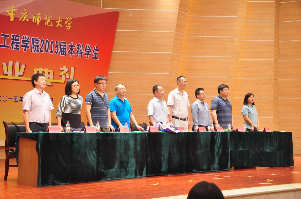 院长崔玉亭、副院长曾毅、党委书记唐敏、党委副书记冉久飞、团总支书记李青松、院长助理冯庆、教学科研办公室主任张菊花、电子系系主任罗海军,以及各级辅导员和2015届全体毕业生。