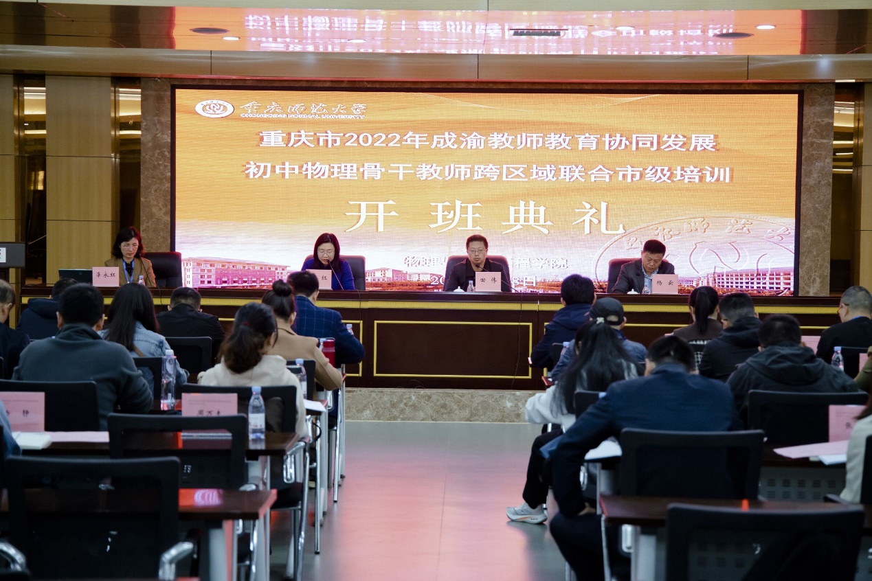 党委书记杨云以及来自重庆市16个区县的30名初中物理骨干教师。开班典礼由物电学院党政办公室主任辜永红主持。