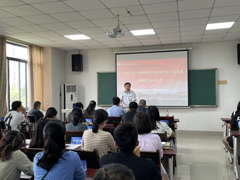 4月20日在集贤楼531会议室召开学习贯彻习近平新时代中国特色社会主义思想主题教育动员大会。学校主题教育领导小组办公室成员、党委组织部副部长任源钢,物电学院党委书记杨云、副院长(主持工作)余鹏、党委副书记曾艳、副院长张丁可以及全体师生党员参加动员会。