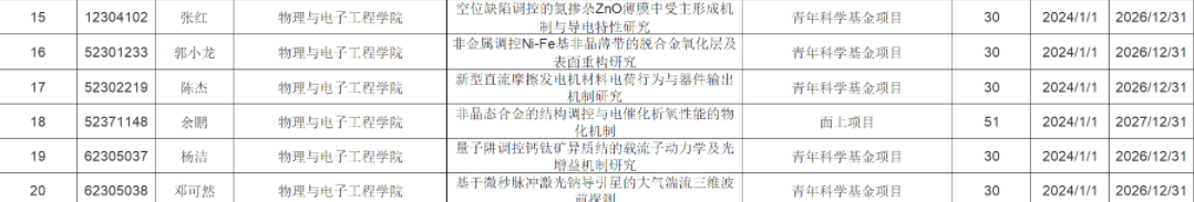 近日,国家自然科学基金委公布了2023年集中申报期国家自然科学基金项目评审结果。物电学院获批6项国家自然科学基金项目,获资助总经费201万元,创历史新高。