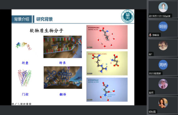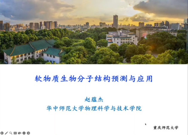 凝聚态物质科学创新团队邀请,华中师范大学物理科学与技术学院赵蕴杰教授为物电学院师生作题为“软物质生物分子结构预测与应用”的学术报告。报告通过线上线下相结合的方式开展,物电学院副院长余鹏教授主持,学院相关课题组师生参加了报告会。