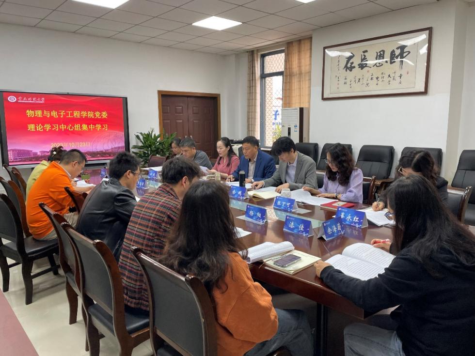 党委理论学习中心组在集贤楼524会议室开展集中学习会,专题学习习近平新时代中国特色社会主义思想和习近平总书记重要讲话精神等内容。学习会由物电学院党委书记杨云主持,学院党委理论学习中心组全体成员参加。