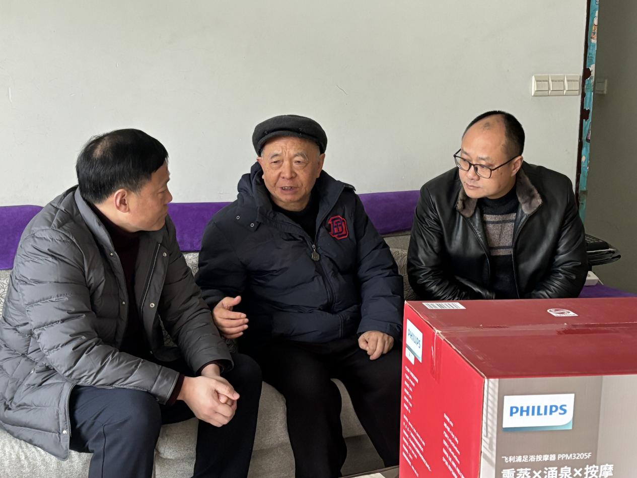 杨云书记和范嗣强主席带着慰问品上门看望了六位离退休老同志,杨云书记代表学院向退休老同志们长期以来对学院发展做出的卓越贡献表达了衷心的感谢,并向他们及家人致以新春的问候和祝福。在与离退休老同志交流中,92岁高龄的王承先老师精神矍铄,非常高兴地询问学院发展现状,关心学院发展;70余岁的胡先权教授了解到学院科研发展现状和问题,积极为学院科研发展建言献策,对学院教学科研工作蒸蒸日上,他深感欣慰。杨云书记表示,学院将一如既往地关心离退休老同志,用心用情用力做好离退休人员的服务保障工作。同时,也希望离退休同志们持续关注学院发展,为学院建设献计献策,发挥榜样引领示范作用,传承物电精神,共同推动物电学院各方面工作的高质量发展。