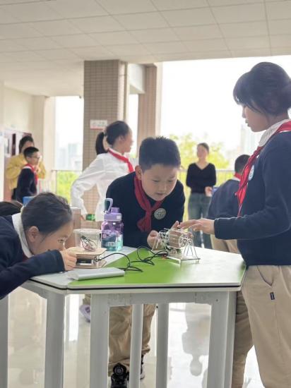 实验楼的三个楼层。在一楼的光电功能材料实验室,他们通过扫描电子显微镜观察微观世界的奇妙结构,惊叹于激光技术的精密调控;在二楼的智能技术展区,“激光成像”“智能鞋垫”等互动装置让抽象的光电传感原理变得生动有趣;三楼则化身为“科学游乐场”,模拟触电仪、特斯拉哥伦布蛋、会跳舞的磁铁彩蛋等实验项目,让孩子们在动手实践中理解电流、磁场、共振等物理现象。