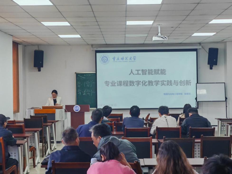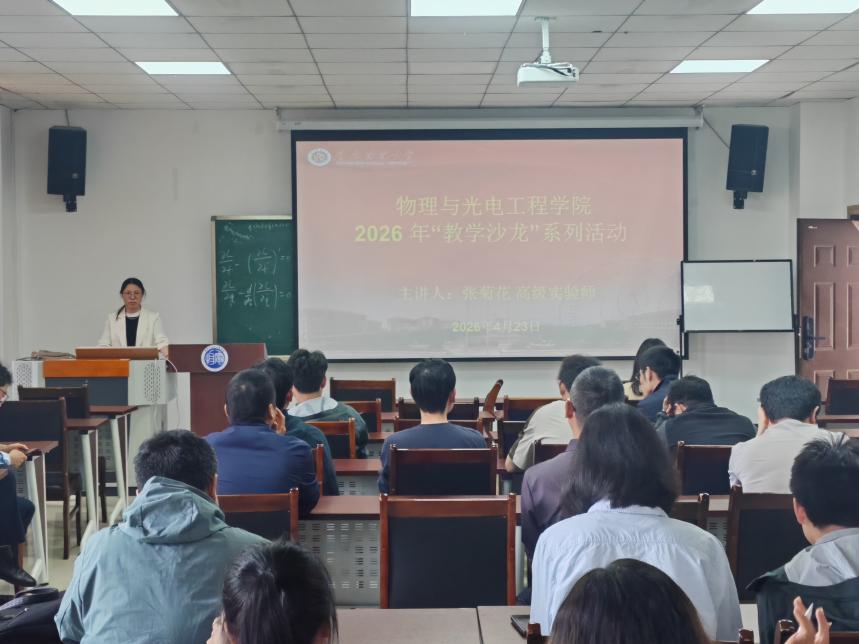 为深入推进教育数字化转型,提升全院教师人工智能与专业课程教学融合的实践能力,助力一流课程建设与教学质量提升,2026 年 4 月 23 日下午,由教师教育学院(教师教学发展中心)、物理与光电工程学院联合主办的 2026 年第 4 期教学沙龙活动,在集贤楼 511会议室顺利举办。本次沙龙以 “人工智能赋能专业课程数字化教学实践与创新” 为主题,全校各学院60余名师生到场参与交流学习。