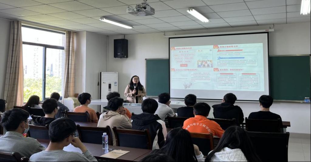 随后,学院团委书记余海蔚老师向大家介绍了大学生志愿服务西部计划。余老师用11级学姐的生动案例,向未就业学生展示了“奔赴基层,曲线就业”的发展可能性,鼓励同学们在基层接受锻炼,磨炼本领和意志,服务期结束后再选择。她还详细介绍了西部计划志愿者工作内容、待遇补贴、照顾政策等同学们关心的问题。最后杨阳老师重点介绍了韩国h漫