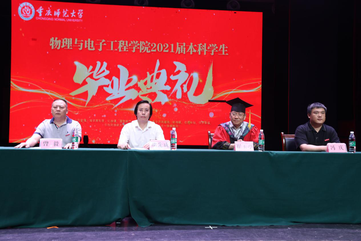 2021届本科生毕业典礼在校友会堂演出厅隆重举行。出席典礼的嘉宾有:院长崔玉亭教授、党委书记胡先成教授、副院长曾毅副教授、党委副书记曾艳老师,团总支书记李青松老师以及教授2021届同学的各位老师和辅导员。