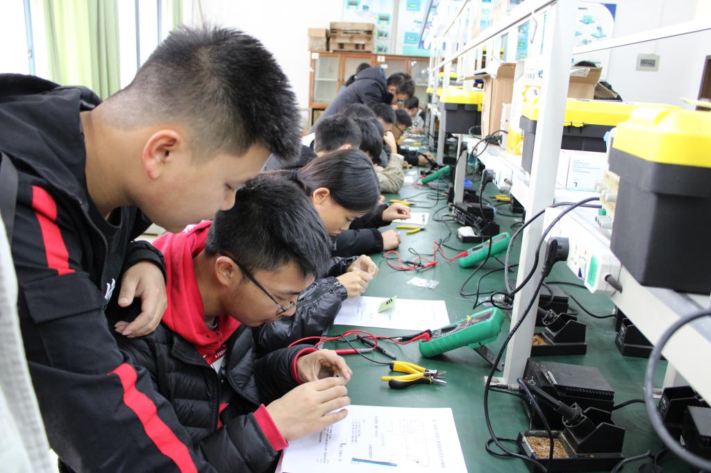 比赛过程中,协会人员对赛场秩序进行维持,并及时帮助参赛选手解决遇到的问题。同学们热火朝天地讨论,按照步骤有条不紊地进行焊接。在组员的相互配合下,各组参赛选手渐入佳境,逐渐找到了焊接的窍门,焊接速度逐渐加快。