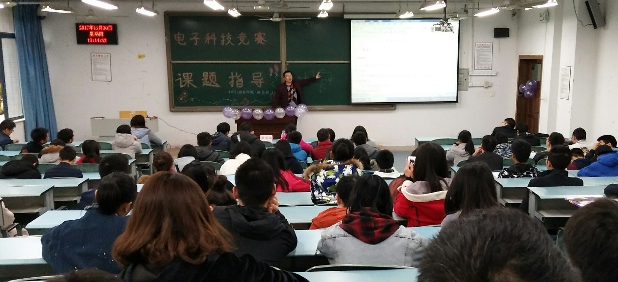 科技部在2017年10月30号周四下午一点弘德楼15102开展电子科技竞赛课题指导,邀请专业老师罗海军为参赛同学讲解部分相关知识以及分析比赛题目,从而帮助同学们整理思路,积极备战。