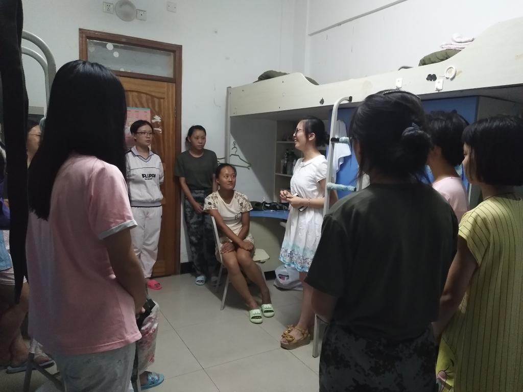 为加强学院工作建设,加深新生对物电学院、对学科建设的认识,同时也为了让新生更快的融入大学生活、融入物电学院,保障学生身心健康成长,弘扬和传承物电学院优秀精神,军训第一周,物电学院甄选出九名品学兼优、积极向上、热情周到的学长学姐们,深入新生宿舍,为他们介绍学院建设、专业学科概括、辅导员团队并且为他们答疑解惑。