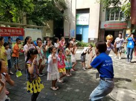 美丽中国实践团,于2016年7月16日早上在重庆磁器口凤凰山社区开展了以“锻炼强体魄,歌舞心飞扬”为主题的“绘梦小课堂”。