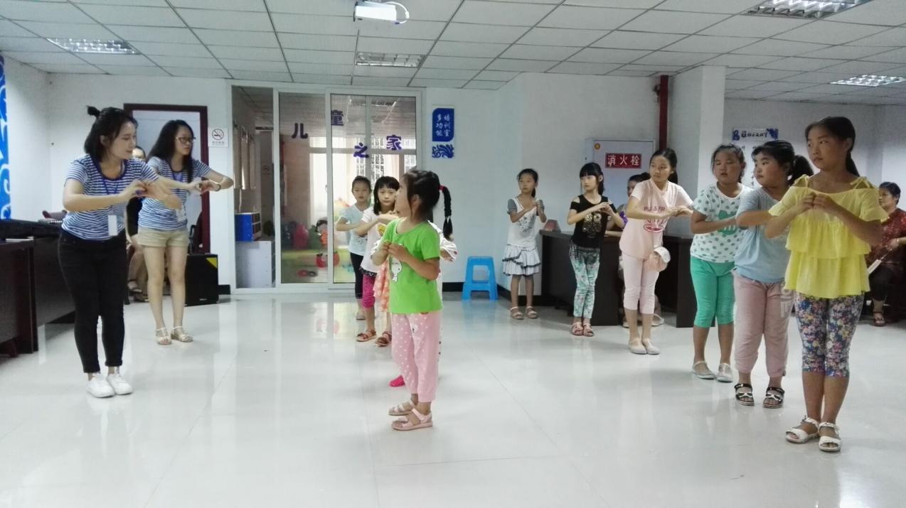 为通过市民学校兴趣课程帮助社区儿童开拓眼界,激发他们探寻未知领域的热情。今天上午的市民学校兴趣课堂授课过程伊始,服务团的大哥哥大姐姐们根据兴趣特长,将社区冒雨而来的20多个孩子们分为舞蹈组和歌唱组。舞蹈组的孩子们聚精会神地,跟着志愿者大姐姐们一拍一拍地学习舞蹈动作。他们之中不乏有天资聪颖的小孩,跳出了只有在稚嫩的孩子们身上才能看到的曼妙的舞姿。虽然不是所有喜欢跳舞的小朋友都那么有天赋,但可以肯定的是,每个孩子都付出了最大的努力学习舞蹈动作。而歌唱组也毫不逊色,没有扭扭捏捏,他们全都放开了歌喉。一开嗓,就使得我们惊叹叫好。他们那专注、认真的神情无不透露着他们对知识的渴望,透露着他们对于新鲜事物的好奇。