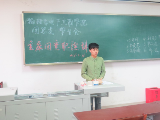 初夏时节,物电学院学生会团总支·学生会正值换届,为保障学生会工作继续有条不紊的进行,团总支主席团的竞选也正在进行当中。2016年5月26日,在集贤楼511教室成功举办了韩国h漫