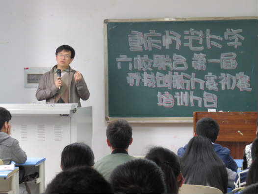 的罗海军老师为参赛选手们作赛前指导,他简要介绍了科技创新大赛的相关内容以及情况,并说到“培养创新意识和创新能力是大学生素质教育的核心。”随后,罗海军老师向大家讲解了什么是联动装置以及为同学们例举了往年联动装置的成果,引起了同学们极大的兴趣。接着美术学院团总支书记刘艳坤老师也鼓励大家,积极发挥想象力,争取得到最好的成绩。