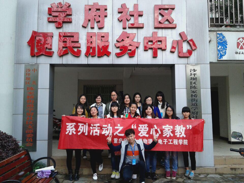 中国少年说言道少年强则国强,所以对青少年的教育是至关重要的。2015年4月9日,物电学院师能素质协会副会长黄茜带着一干志愿者冒着大雨前往陈家桥学府社区为新一期“爱心家教开课啦”做宣传。瓢泼而来的大雨并没有浇灭志愿者们前往社区做宣传的热情,为让社区里小朋友们得到优质的爱心家教服务,志愿者们在实践中得到锻炼和提升,师能素质协会的成员可谓印证“为爱的传播,风雨无阻”。