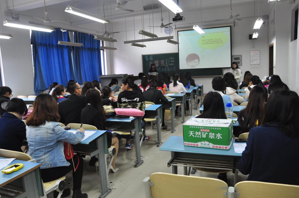活动伊始,主持人宣读比赛规则后比赛正式开始。首先是对各个学院的同学进行教室的安排,再由参赛者进行抽签决定比赛顺序,然后每个人结合PPT与板书进行讲课。赛前同学们都在对自己所讲的题目反复练习,为即将开始的比赛做好充分的准备。比赛过程中各个学院的同学在讲台上对题目进行短暂的讲述,各个选手教学设计科学规范、课堂组织合理、语言生动富有感染力、教学仪态大方得体展示了师范生的风采。最后各评委在结合参赛者的普通话语音标准、板书字体工整、选题切合中学要求、讲解内容科学准确等因素进行打分,再现场公示初赛结果以及对本次比赛进行总结。