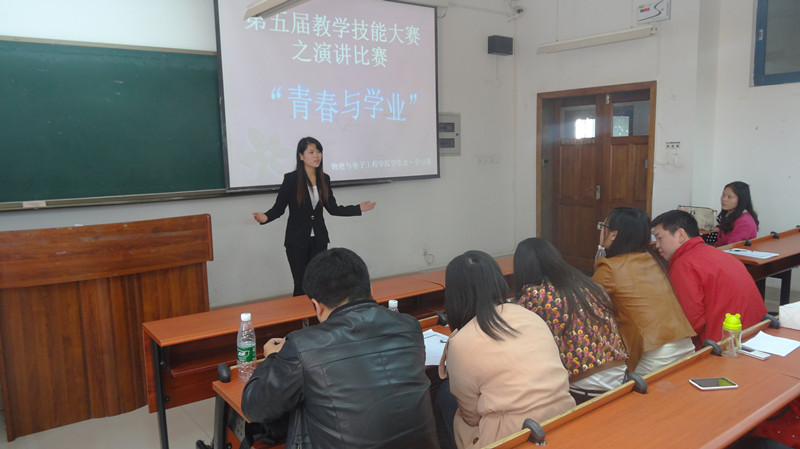 为积极响应学校人才培养“五大计划”的号召,充分落实每一个本科生专业素能提升的政策、方针,物理与电子学院“第五届教学技能大赛”仍在继续!2014年4月9日中午12:50,一场“口才与语言之战”在12104教室精彩上演,韩国h漫