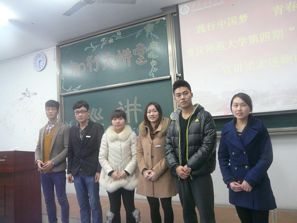 “大手牵小手,共绘中国梦”是来自美术学院的贾玉丹同学的宣讲主题;一场趣味运动会为社区老人们带去一次新鲜的体育运动是体育学院“三下乡”团队最大的收获;“我是社工,我很平凡,因为坚定勇敢,所以光华卓卓。在平凡的岗位上完成伟大的社工事业,在前进的道路上我们探索前行,做自己的英雄,成就自己的小社工。”是历史与社会工作学院践行青年中国梦的衷肠;张仕婷同学以“中国梦,你我共参与”为主题介绍了化学学院在陈家桥社区进行的“生活水平问卷调查”情况……最后,物电学院卓娅婷同学与大家分享在今年暑期三下乡活动中的感悟与体会——来自基层的诉说才是国家不断进步的准则,真诚的沟通建立起人与人之间最真诚的情谊。家电义务维修、“小桔灯”爱心家教、走访敬老院……在每一次的活动过程中学会成长,明确了自己努力的方向。