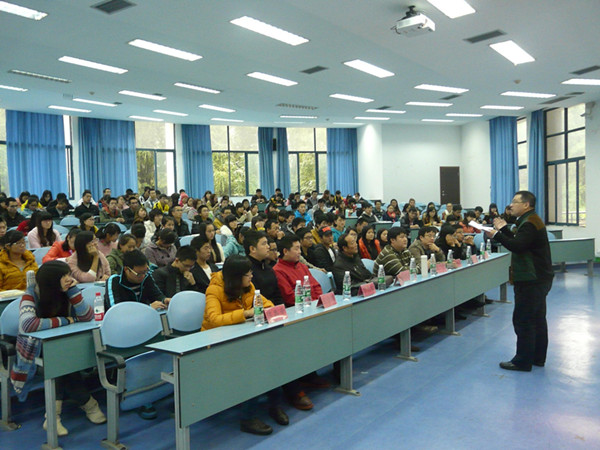 在会上,学院党总支副书记冉久飞老师首先为本次的学生专业技能大赛做动员演讲。“机会永远只留给有准备的人。”冉老师说。冉老师还告诉同学们,平时的技能训练会积累成一种迈向成功的经验,比赛的目的是让同学们得到锻炼,并鼓励同学们有信心、耐心、恒心,认真投入到比赛中。随后,学院专业老师针对物理学(师范)和电子技术两大专业的特色结合以往学生专业技能大赛的经验,分别给同学们进行了指导。师范生技能大赛指导老师冯庆给参赛者从赛前准备、项目准备、临场发挥等多个方面专业指导,最后他希望各参赛者在比赛过程中善于思考、总结以争取有所收获。电子科技制作大赛的指导老师宋培森则通过列一个实际参赛例子来告诉同学们参与过程虽然乏味但是只要坚持就会获得成功。“古来圣贤皆寂寞,惟有饮者留其名”,他相信大家会在坚守中成长,在磨砺中提升,在快乐中进步。
