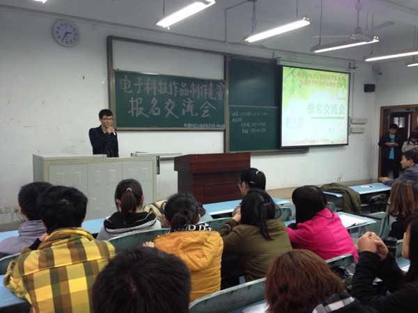 电子科技作品制作竞赛报名交流会在15102正式举行。此次活动由学生会·科技部举办。参加本次活动的嘉宾有物电学院学生会主席丛天雷,团总支学生副书记徐双冰、学院学生会副主席卓娅婷。