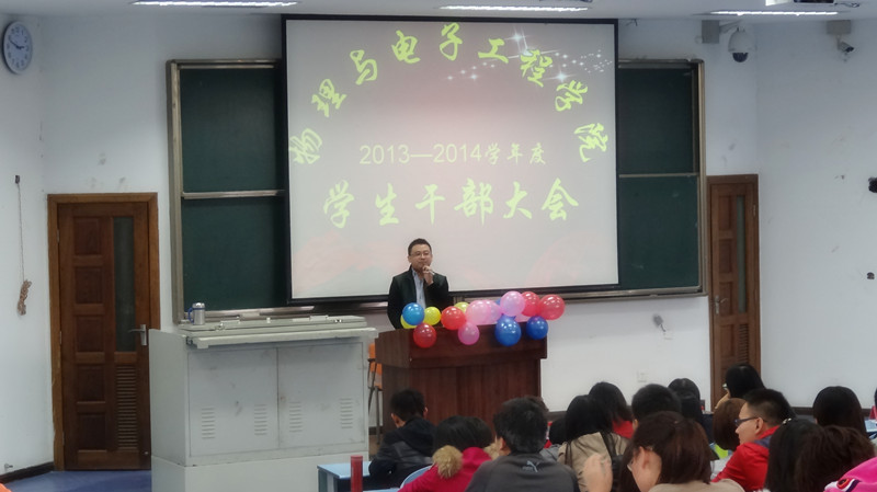 随后,党总支副书记冉久飞老师就“学生干部”这一特殊称谓发表讲话,他提出,作为新一代大学生,具备的不仅仅是学富五车,而是更应该具有努力地为他人付出的心。学生干部正是拥有这样的热心群体。冉书记还强调,想要成为一名优秀的学生干部,个人的出发点必定是为人服务而不是急功近利,学会在帮助他人的同时不断提升自己。当然,作为学生干部需要正确衡量学习与工作的重要性,不能因身为学生干部而有“特权”,反而应严于律己,以身作则,为身边的同学做好榜样。最后冉书记鼓励在场的所有学生干部要善于发现身边其他人的发光点,学会与人相处,一直保持服务热情,为集体的海洋献出一份属于自己细水长流。