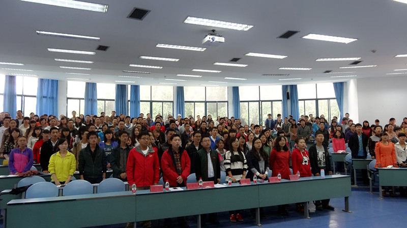 校歌,嘹亮的歌声勾起同学们对昨日军训生活的怀恋,为大会营造了良好的气氛。紧接着,团总支书记李青松老师为同学们介绍团总支·学生会14个部门的主要职能以及简要的介绍了各部门接下来的工作计划。李老师还提出提出期盼,希望学生会与班级增强联系,加强沟通,更好的做好相关学生工作。
