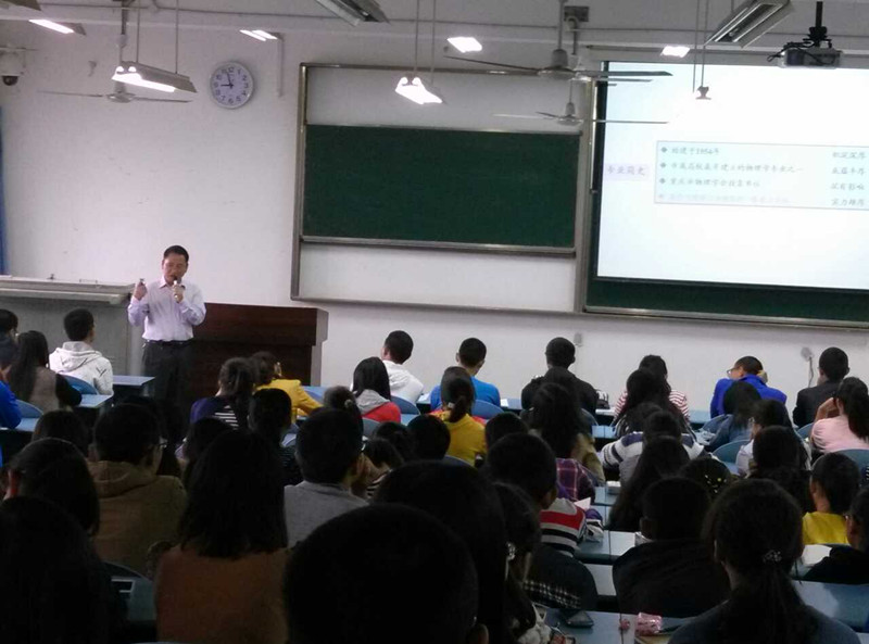 院长崔玉亭在弘德楼15204给他们举行了 “物理学专业思想教育“讲座,此次讲座由辅导员邓娜老师主持。