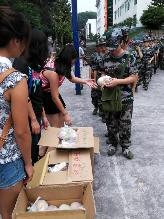 13级的新生们。炎热的烈日磨练着大家的意志,滚烫的大地考验着大家的耐力,却抹不去操练场上物电学子挺拔的身姿。13级的新生们即将在部队中度过自己人生新起点的第一个中秋节,离开了父母的怀抱,他们学会自己飞翔;无法同亲人团聚,物电与他们同在。学院给他们送去了暖人心的关心、节日的问候以及月饼水果。