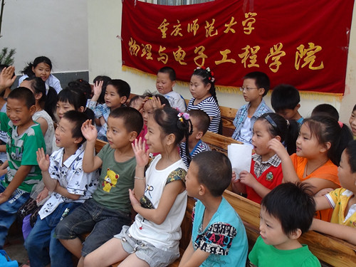 重庆的下午太阳如火,可是不会阻断志愿者们教育帮扶的决心,下午,顶着高温和太阳,志愿者们举起韩国h漫