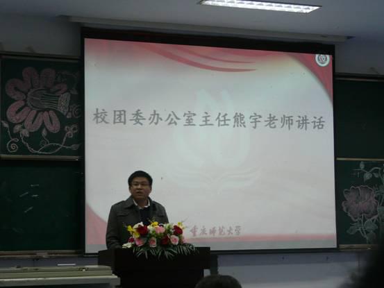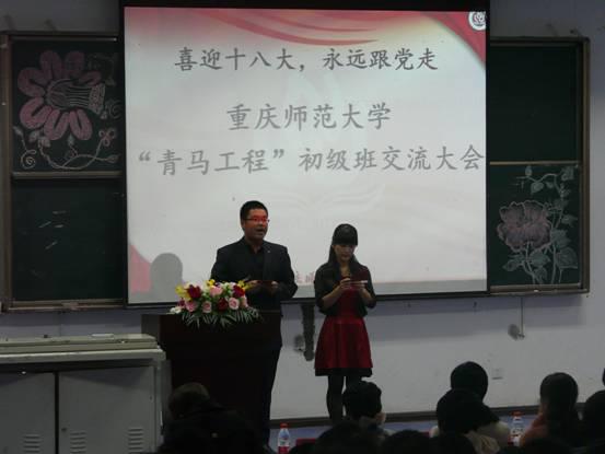 与外国语、政治、历社、化学五个学院,一同举办了“喜迎十八大,永远跟党走,青马工程初级班交流大会”。本次会议于2012年11月6日中午一点在弘德楼15105隆重举行。出席会议的嘉宾有校团委办公室主任、学校青马工程主要负责人熊宇老师,各学院分管青马初级班的指导老师以及各学院团总支·学生会代表,其中韩国h漫