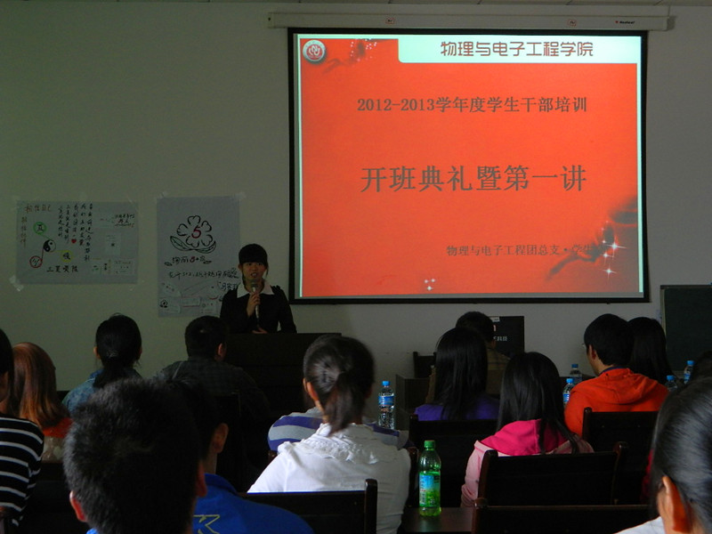 2012-2013届团总支·学生会干部培训开班仪式暨第一讲在第二实验楼501会议室隆重开幕。出席本届开班仪式的嘉宾有韩国h漫