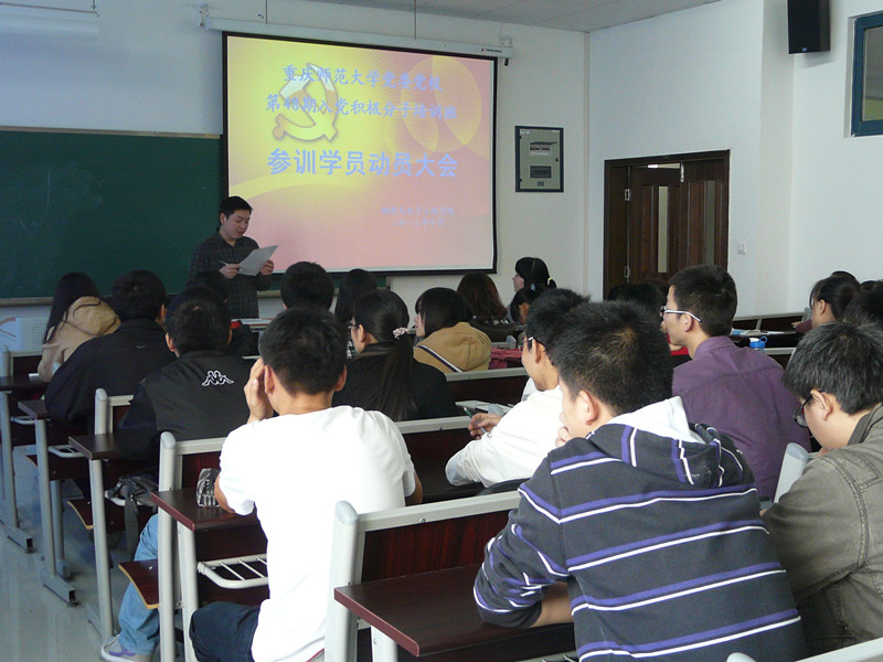 党委党校第48期入党积极分子培训班参训学员动员大会。参加此次大会的有物电学院党总支副书记冉久飞、团总支副书记李青松、学院辅导员张坡、余海蔚及10、11级各参训人员。