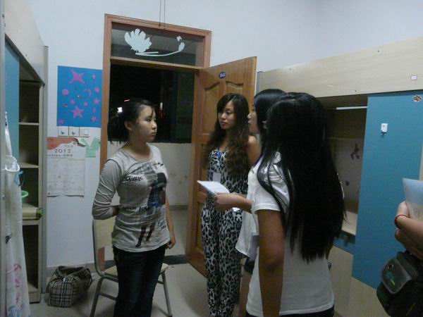 团总支学生会的12名成员在主席团的带领下,来到了2012级大一新生的宿舍对他们的住宿情况进行了了解,同时带去了物电学院所有人对他们的关心和问候。