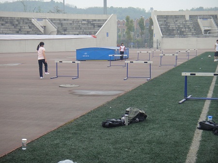 在培训开始前,运动员们先绕着操场慢跑了几圈进行热身远动,然后体育老师就根据同学们所报的项目分批次进行训练,有短跑,长跑,调高,跳远等项目。当老师看完同学们的表现后,都对他们一一进行了点评,并指点了某些技巧和方法。此外,参加100米跨栏的同学们也在老师的指导下学习如何更快更好地去完成跨栏动作。这也是参赛选手第一次体验跨栏的感觉,从他们脸上兴奋的表情认真的态度就可以看出他们必将会喜欢上这项运动。此次培训活动在下午17:00结束,即使经过了一下午的训练,运动员们的脸上仍然挂着微笑,没有一个人在训练过程中放弃和叫累,因为大家心中都有一个梦想:超越自己,为物电学院争光。