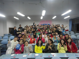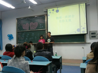 2011级物理学一班的同学在蒋小平老师及班委的组织下,相聚在弘德楼5403室,开始了以“庆祝物电一班生日”为主题的班会。到场的嘉宾有蒋小平老师,物理学二班的班长李宏和团支书李佳佳。