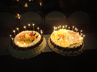 这次活动以聚会的形式展开,首先由周康和谭馥佳同学带来一首《爱》作为班会的前奏将大家的热情带动起来,主持人陆海锋和徐芳雅则以感人的开场白拉开了本次活动的序幕:“我们有幸相聚在重师,相聚在物电一班,这就是缘分。我们要用心呵护物电一班这个大家庭,认真对待身边的每一个人,坚定自己的信念,美好的未来在向我们招手,把握你我的今天,相信我们的明天会更好!”。接下来展示由班委组织拍摄的PPT,里面记录下了同学们最真的一面,同学们自信、阳光的一面,也有老师对同学们的关心,这一幕幕生活剪影构成了物电一班这个和谐、感人的大家庭。伴随着感动,同学们一起唱起了《相亲相爱的一家人》,同时他们每个人写下了自己对班级的祝福,一起点亮两个18英寸蛋糕上的心形蜡烛,他们默默的许下心愿。蒋老师上台并发表了讲话,他祝愿每位同学都能够努力奋斗,有一个美好的未来!接着蒋老师为每个同学切蛋糕,送上真挚的祝福。最后全班拍了一张全家福,他们会记住今天,2011年12月1日,这个难忘的夜晚,物电一班的生日!家的生日!