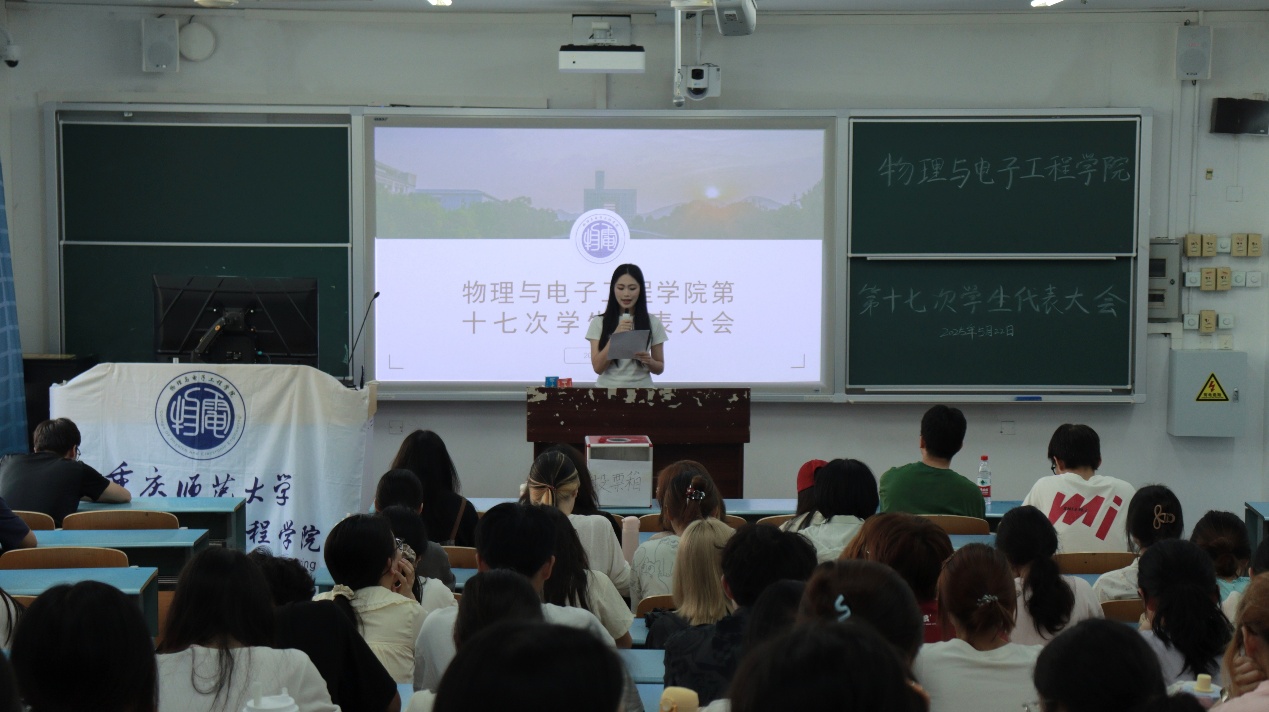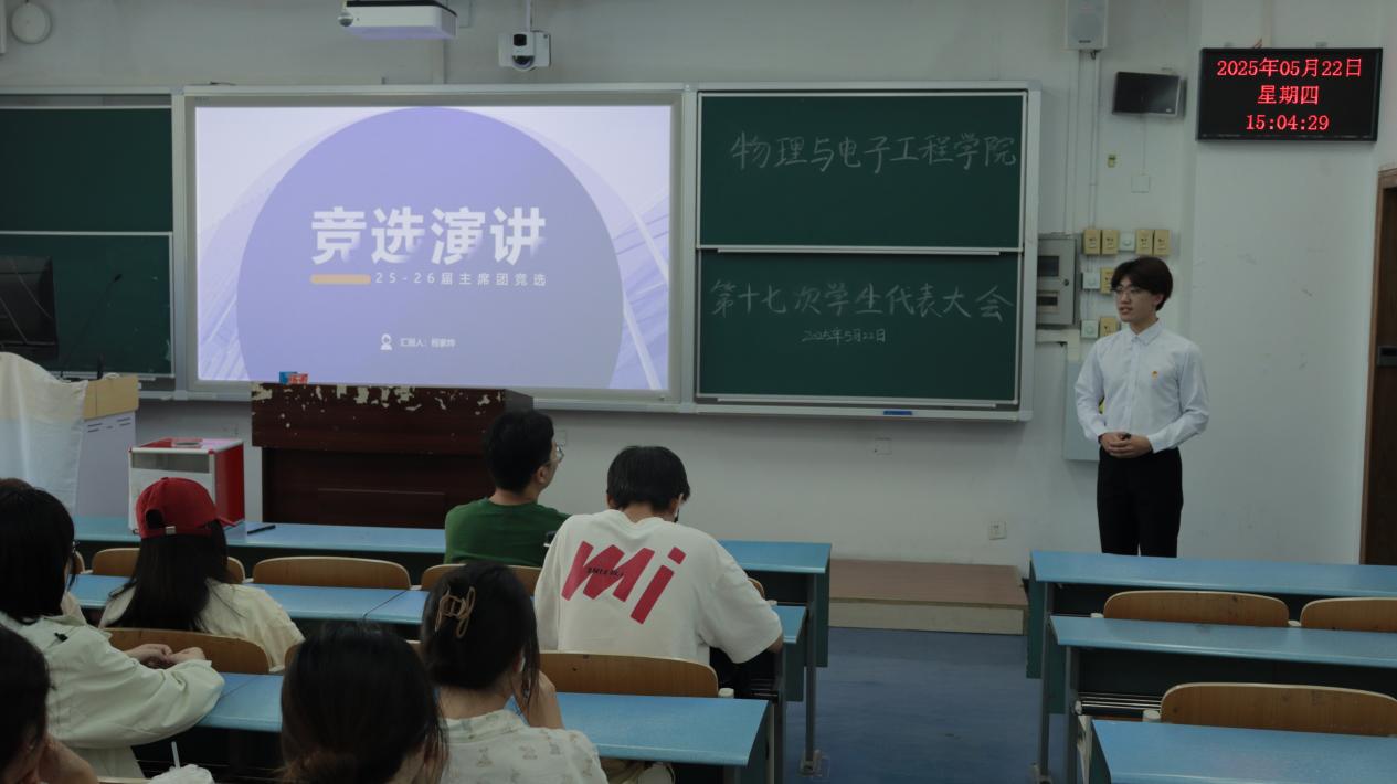 在弘德楼召开第十七次学生代表大会暨2025-2026学年分团委·学生会主席团候选人竞选大会。本次竞选共有4名候选人,全院各年级、各专业70名学生代表参会,辅导员马梓茂老师作为嘉宾出席。