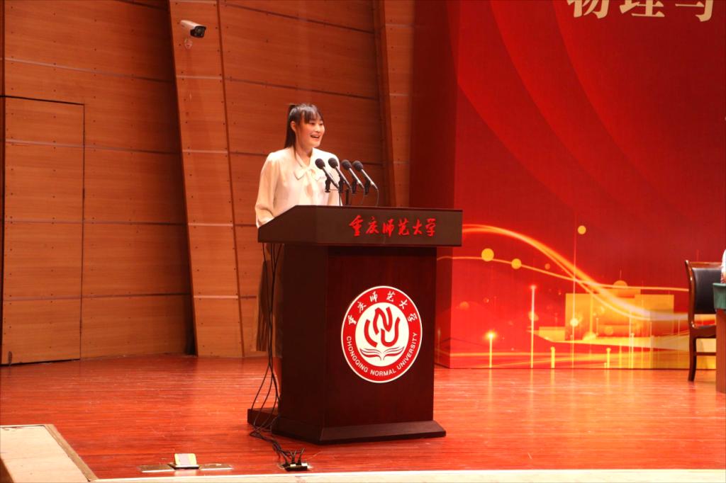 高年级学生代表、2022级物理学专业钟子月同学上台发言。她从“做好自我管理,立足专业学习”“理论结合实践,培养创新素养”“投身学生活动,助力全面发展”三个方面介绍了自己在学院的成长心得,向新生们传递了勇敢追梦、全面发展的重要性。