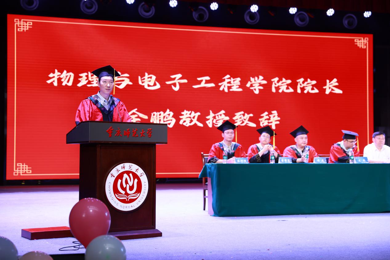 最后,余鹏院长代表学院向全体毕业生致辞。他回顾了2025届本研毕业生取得的丰硕成果,深情寄语毕业生们要志存高远、脚踏实地,将个人理想融入国家发展大业;要终身学习、追求卓越,不断实现人生新的跨越。余鹏院长表示,学院永远是学子们坚强的后盾和温暖的家园,期待大家常回家看看。