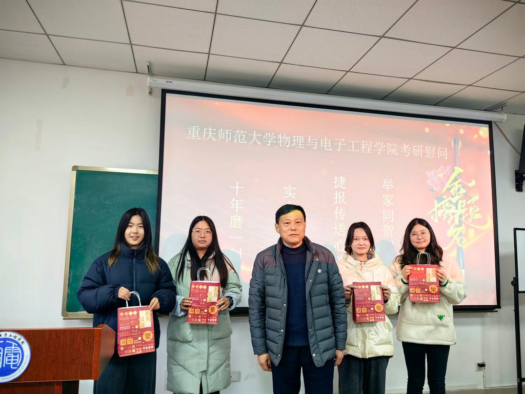 于12月8日开展考研学子专项慰问活动。物电学院党委书记杨云、院长余鹏、党委副书记曾艳带领学院班子成员及相关辅导员,深入考研自习室,与备考学子面对面交流,为他们送上诚挚的问候与殷切的鼓励,并发放了寓意“金榜题名”的考研慰问品,让学子们在寒冬备考中感受到学院的浓浓暖意。