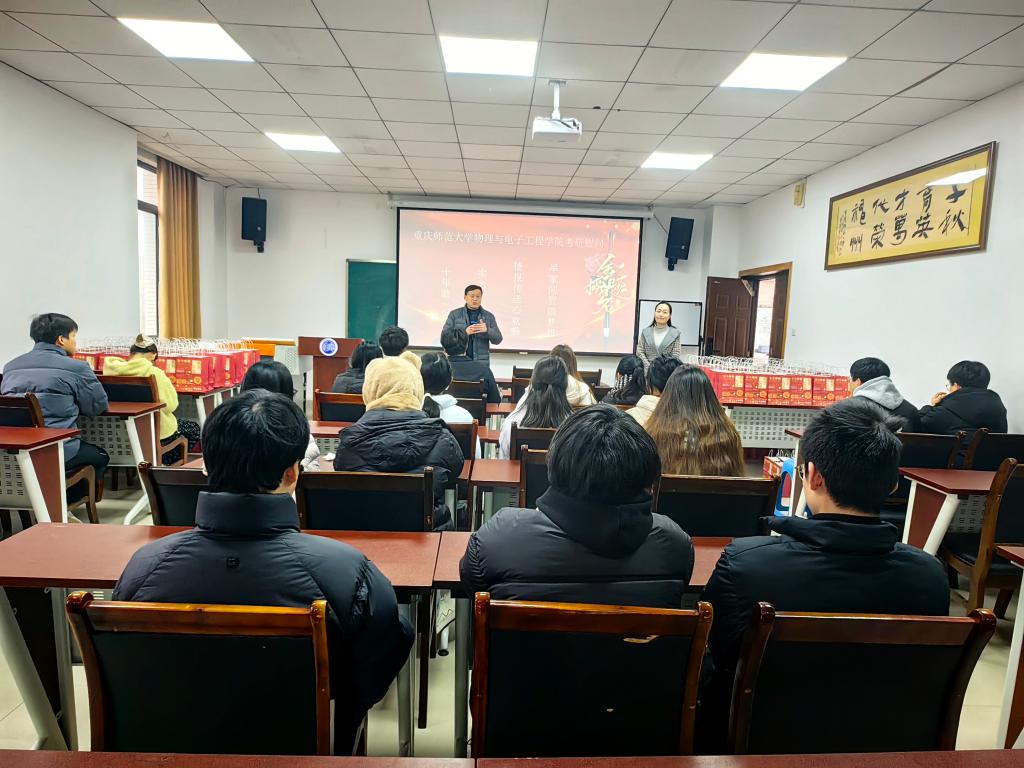 党委书记杨云代表学院向全力冲刺考研的学子们表达了关心问候。他表示,考研是一场漫长且艰辛的修行,同学们能够坚守备考初心、克服重重困难,展现出了物电学子坚韧不拔、勇攀高峰的良好风貌。他叮嘱同学们,在最后冲刺阶段,要科学规划复习时间,注重劳逸结合,合理调节心态,既要全力以赴备战,也要照顾好自身身心健康;同时要树立积极乐观的备考信念,相信自己的付出终将有回报,学院永远是大家最坚实的后盾,会全力为大家解决备考过程中遇到的各类问题。