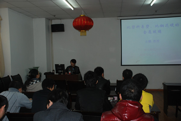 2011 年12月02日 下午4:30,韩国h漫 研究生会邀请余鹏教授,在综合实验楼二楼会议室,为在校研究生做了题为“比塑料易塑,比钢更硬的金属玻璃”的学术讲座。