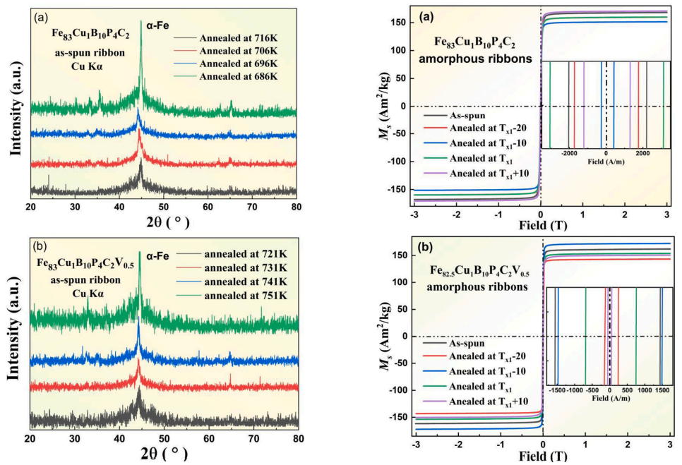 为第一单位在《Journal of Non-Crystalline Solids》(JCR一区,非晶态物理和非晶材料经典老牌期刊)上发表题为“Modulation of soft magnetic properties of Fe83B10P4C2Cu1amorphous alloys by V addition and annealing treatment”的学术论文。