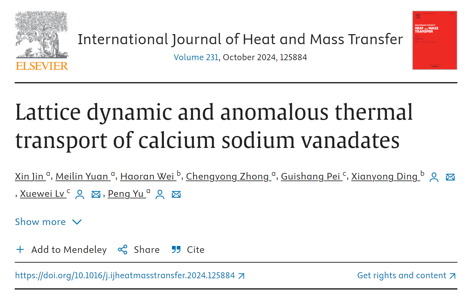先进金属材料与非晶态物理团队在爱斯维尔旗下的传热领域顶刊、中科院热力学小类一区Top期刊《International Journal of Heat and Mass Transfer》发表题为“Lattice dynamic and anomalous thermal transport of calcium sodium vanadates”的高水平研究论文,论文以韩国h漫