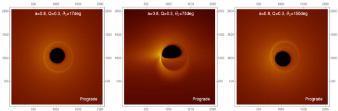 图2:顺行和逆行吸积盘下Kerr-Newman黑洞的图像。